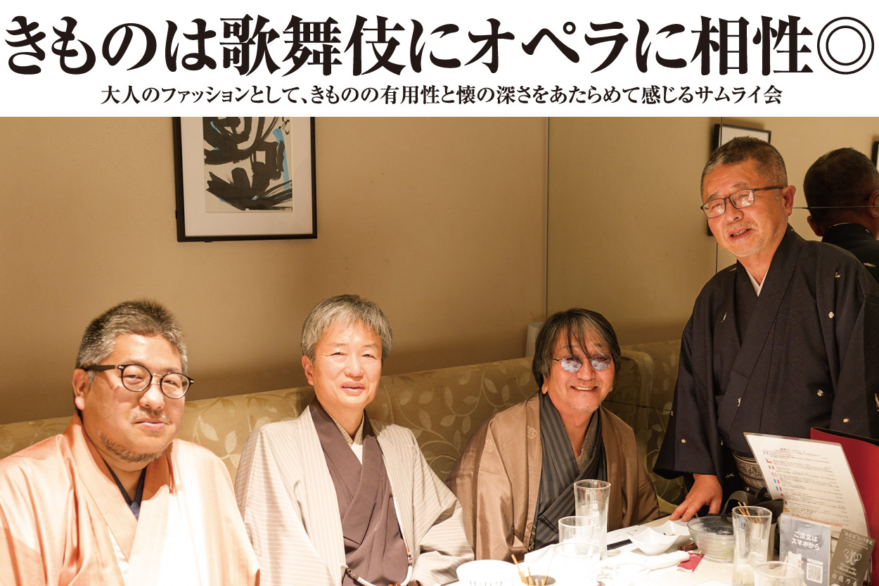 2月の第69巻サムライ会は、落ち着いた雰囲気の串揚げ屋「旬s銀座店」にて開催しました。昨今、インバウンド人気もあり魅力が再認識されている串揚げ。旬sさんの串揚げは薄衣で軽やか、素材本来の旨みが存分に味わえてお酒も会話も弾みます。この日はきものに始まり、歌舞伎やオペラ、長唄、浄瑠璃など、芸能文化の話題がポンポンと広がって、気分も“揚げ”調子(笑)。芸術への想いや感性を共有する中で、皆さまの視点やこれまでの経験談も交わり大変盛り上がりました。きものはやはり、様々な楽しみを柔軟に文化的につなぐものですね。お互いの敬意と温かさに満ちた和やかな雰囲気のなか、あっという間に時は過ぎて、名残を惜しみつつの閉会となりましたが、早春らしく清々しいサムライ会でした。ご参加いただいた皆さまに、感謝申し上げます。