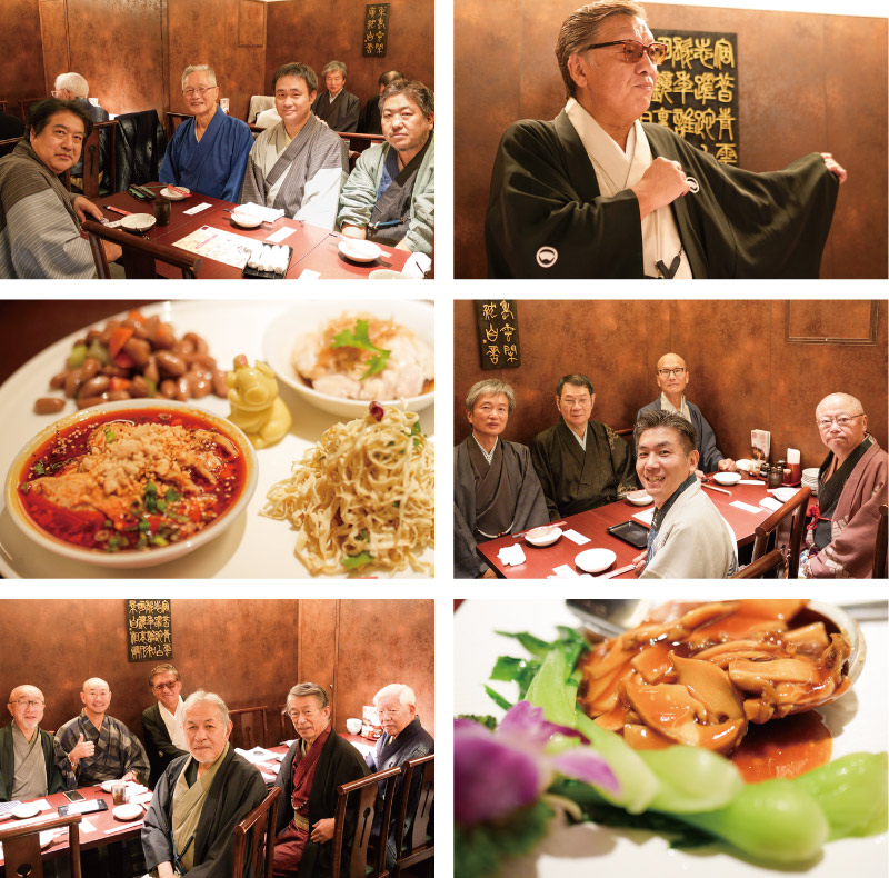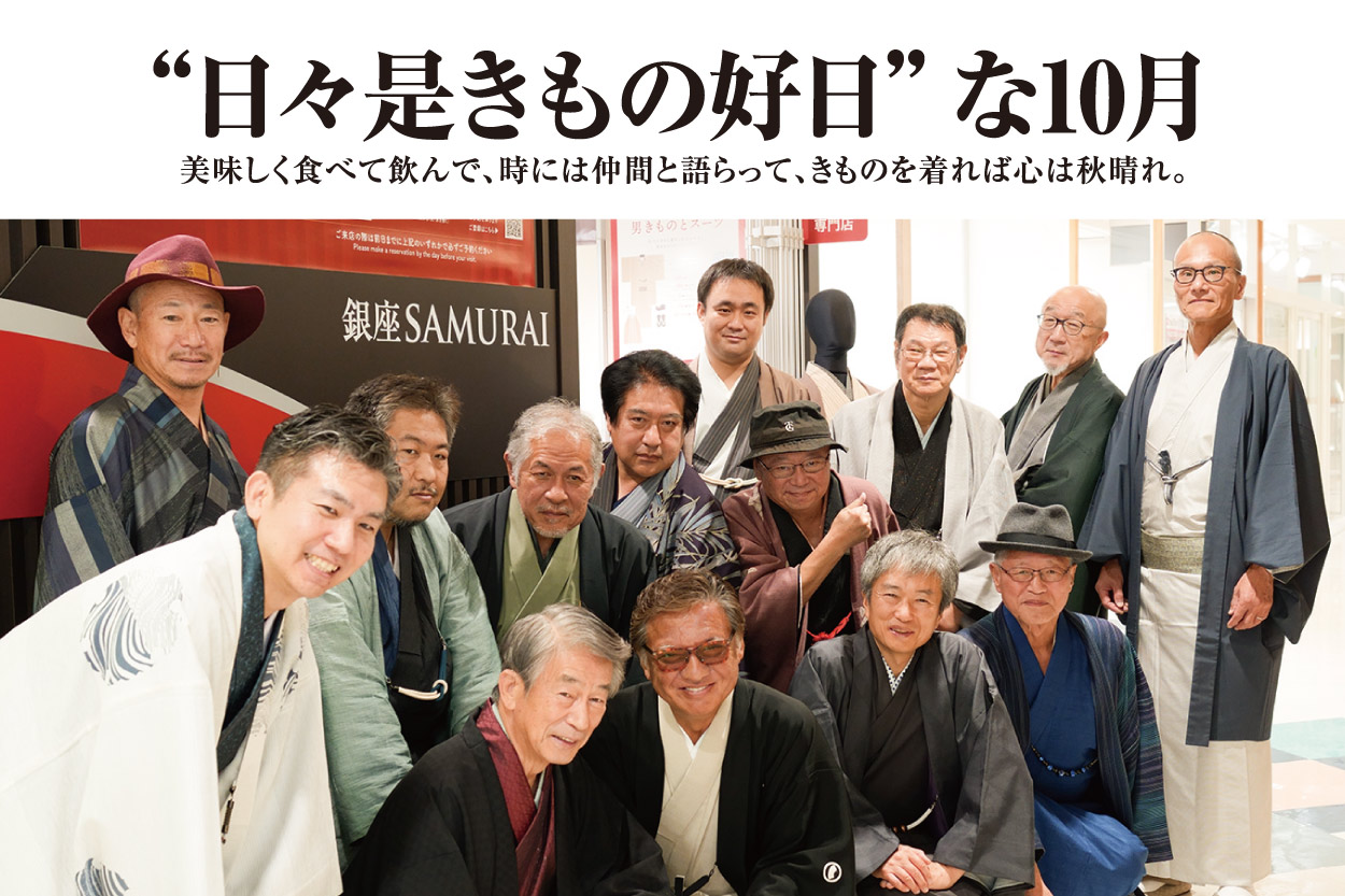 一気に暑さが落ち着いた10月、第67巻サムライ会を開催しました。NPO法人「きものを世界遺産にするための全国会議」吉田議長にもご参加いただいて、お久しぶり!初めまして!のごあいさつとともに乾杯スタート。本格四川料理の前菜に、五感を心地よく刺激するアツアツの麻婆豆腐や担々麺など、ビールがよく合います。アツさなら皆さまのきもの語りもイイ勝負。日本の文化として、また現代の男性が選ぶファッションとしても、男きものへの想いのこもった意見が交わされました。